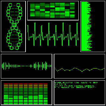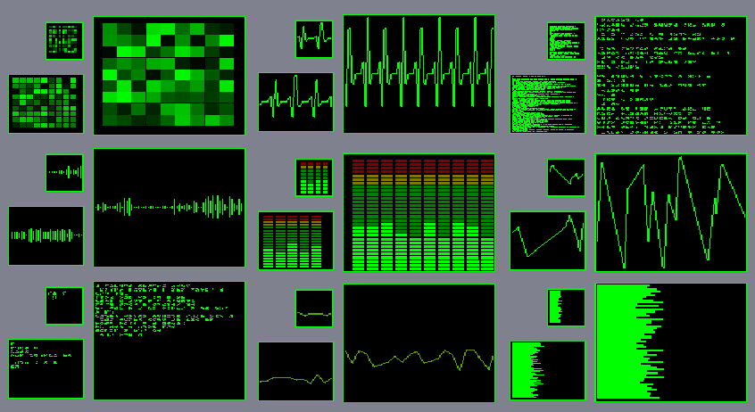 Dynamic VDU is a collection of animated dynamic monitors, That will show a range of alertness form no alert - all is green to full alert - were most is red